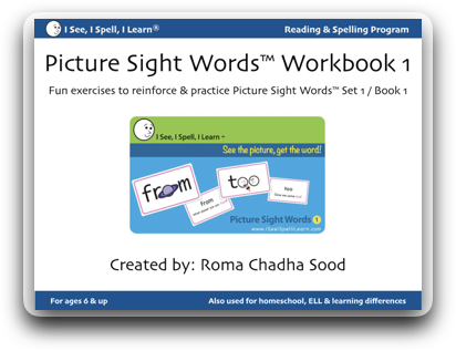 This workbook contains exercises to reinforce sight words from I See, I Spell, I Learn® - Picture Sight Words™ - Sets 1, 2, 3.  It has been designed for emerging readers or those who struggle with reading and spelling. The goal is to have exercises that the child can do independently.