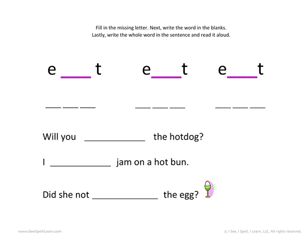 The 65+ pages of exercises in each workbook develop reading, writing and spelling skills. They start with systematic Spelling Exercises that first work on the tricky letter in isolation, then build memory for the entire word, and finally use the word in context in a sentence.    After your child completes the practice pages for each word, move to the Reading & Comprehension exercises. The child must read aloud the sentence and match it with the right picture. Mixed Sentence Mastery is the last section of the workbook, where the child must read and pick the right word to fill in the blank.