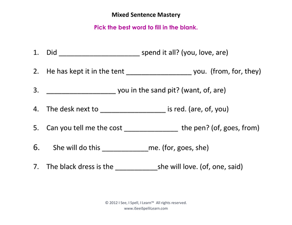 To further solidify spelling, you can also give these sentences as dictation and have the child fill in the sight word without looking at multiple choice options. If you feel additional practice is required, simply print out extra copies of the pages they need to work on.
