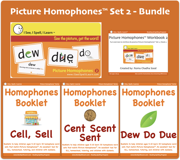 ALL 2 SETS BUNDLE includes: 66 homophones flashcards, 2 eWorkbooks and 30 homophones eBooklets. (30% savings) Flashcards are shipped via USPS and eWorkbooks and eBooklets are PDF downloads.