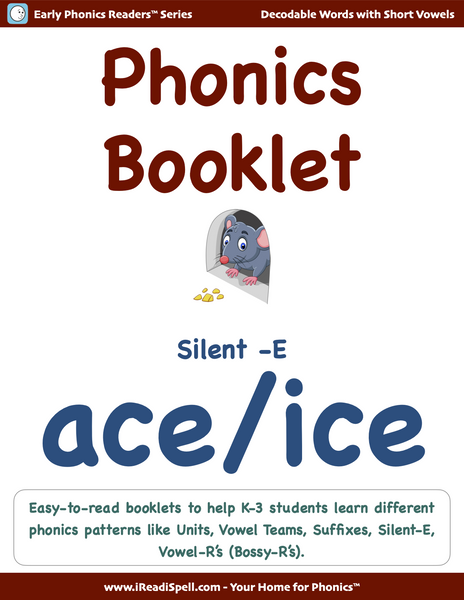 - Silent E - these include: a_e (2 booklets); -age (Silent E and soft G - as in cage);